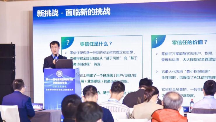 12月10日,由通信企业协会、中国信息通信研究院主办的2021年(第十一届)电信和互联网行业网络安全年会在武汉成功举办,深信服运营商事业部CTO赵马煜受邀出席“创新安全技术论坛”,并发表了运营商行业零信任相关的观点和见解。