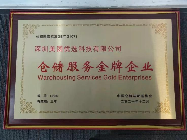 “中国仓储服务金牌企业”是国内仓储物流行业的最高奖项,由中国仓储协会及中国仓储服务质量评建委员会评选,经过客户打分、初审及现场评审、公示无异议后,获得授牌。此前获得金牌企业的有中国供销集团、中通物流、申通物流、苏宁集团等老牌物流企业,美团优选为首家获此荣誉的社区电商平台。