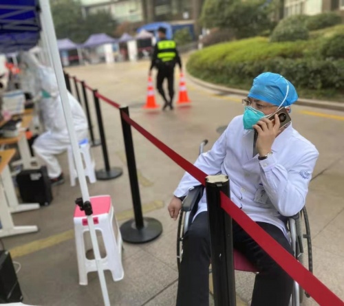 急诊和疫情都刻不容缓,为让在外驰援的同事放心,轮椅成了王弋固定的坐骑,他或是由人推着,或自己两手费劲地转动轮椅两边的铁圈,患者们惊异万分:“这样还能来上班?”骨折不能开车,每天上下班怎么办?“刚好这些天不回家,节约了路上的来回时间,能把更多精力投入到工作中。”他说,“我们还有更多的医务人员,忙到凌晨两点多还要回家,第二天六点就要到岗,我能睡在值班室里,已经算幸运了!”
