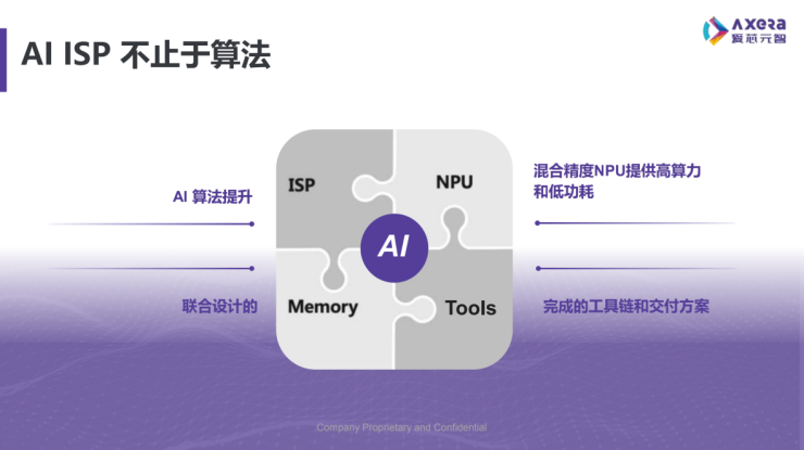 作为国产AI芯片领域的新生力军,爱芯元智拥有业内领先的“混合精度NPU”和“自研AI ISP”两大核心技术优势,并在此基础上延展出高算力、低功耗、高算力利用率等产品特点,可以灵活运用低比特混合精度算法,有效提高芯片效能功耗比,大幅提升传统ISP中多个关键模块的画质,减少对DDR的需求,同时让NPU的性能提高到50%以上。