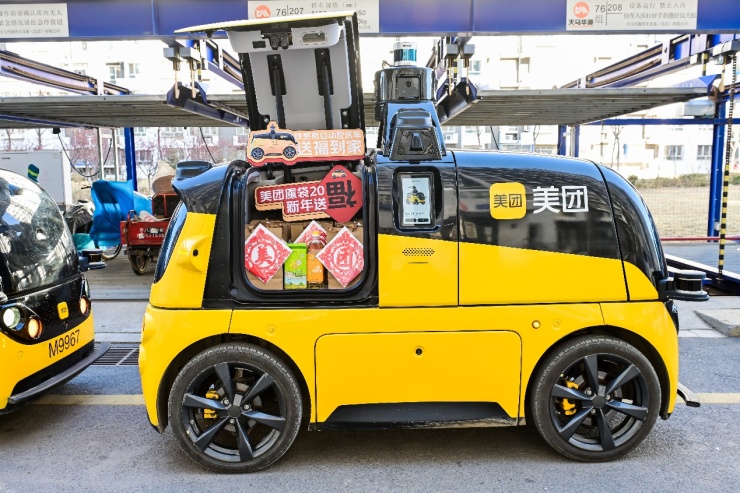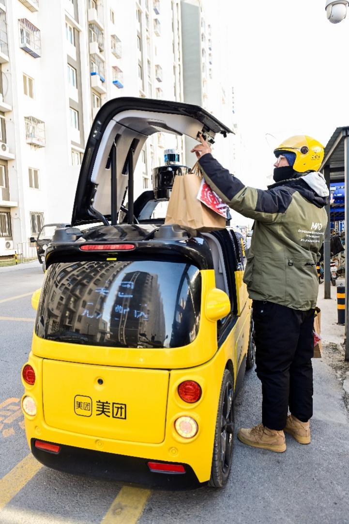 ▲美团自动配送车在顺义配送 摄影师:卢奇