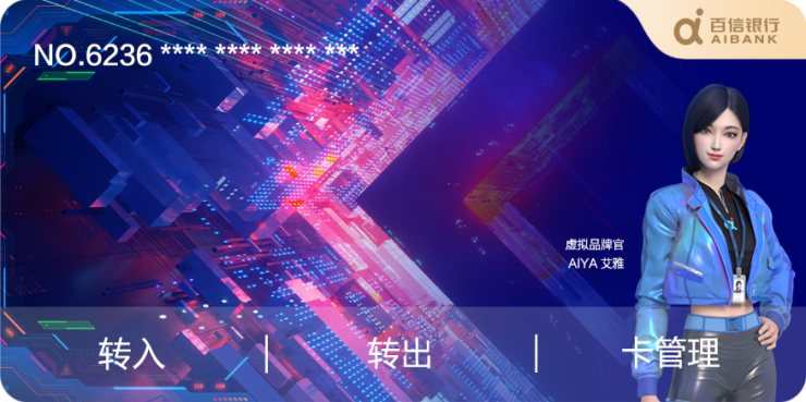 活动上,百信银行发布了业内首个数字资产管理平台“百信银行小鲸喜”微信小程序,并开放了融合AIYA数字藏品皮肤的数字银行卡预约通道,打造充满科技感和未来感的数字银行卡,为用户提供数字权益、储蓄账户、财富管理等数字金融服务。