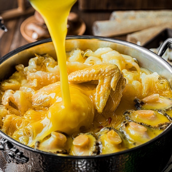 餐饮品牌“那都不是锅”以“花胶鸡”享誉整个行业,招牌菜“鲍鱼花胶鸡”通过优质花胶与清远走地鸡超过8小时的炖煮,将200斤水煲出90斤汤,最终成就一锅“黄金汤”,颜色金黄,口感稠滑,营养丰富,单个实体店铺日销量达数百份。