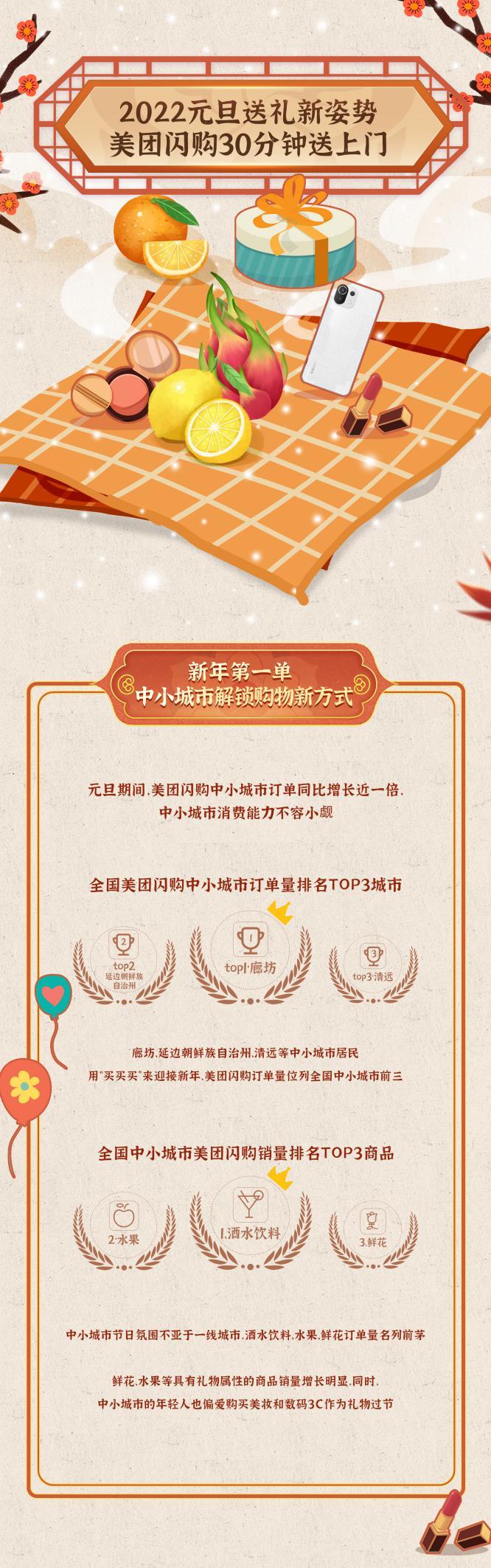 2022元旦“第一礼”:美团闪购“礼品单”增一倍 数码、美妆受欢迎