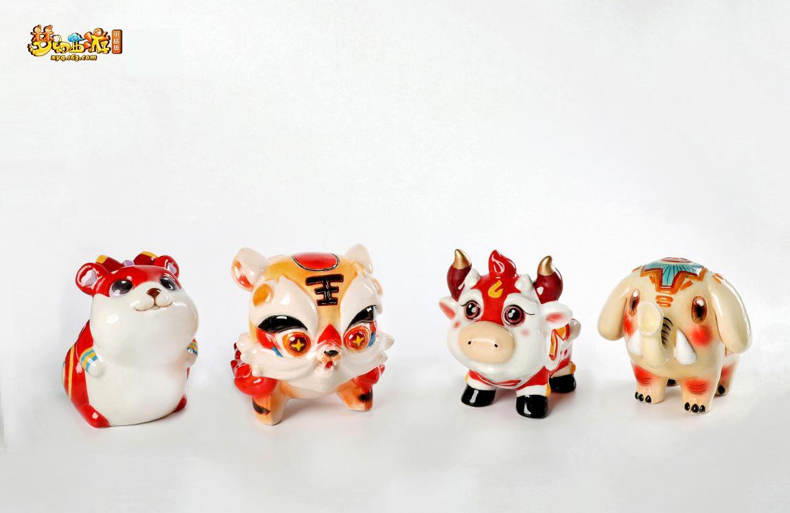 在高水旺老师的神来之手下,超级神虎还拥有了“超级神鼠”“超级神牛”“超级大象”三位唐三彩小伙伴,萌态形象跨次元与玩家相见,极大地激发了玩家们了解非遗的兴趣。玩家在游戏中畅游三界的同时,既欣赏了游戏中盛唐背景下的艺术风物,又能领略国家级非物质文化遗产中唐三彩烧制技艺的绚丽多彩,每一位参与其中的少侠都能够为传播传统文化助力。