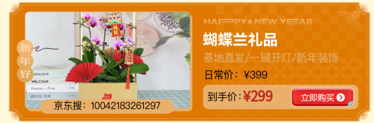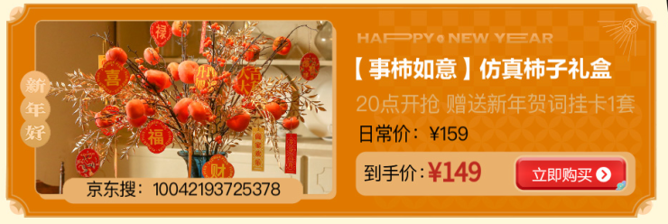 最能增添过年气息的就要数年宵花了。京东生活服务上线的事柿如意仿真柿子礼盒,挂着福禄寿喜的贺词挂卡,无论是摆在玄关还是客厅都鲜艳抢眼;蝴蝶兰、水仙等传统年宵花应有尽有,还有各种年宵礼盒满足精致girl对布景统一性的要求。