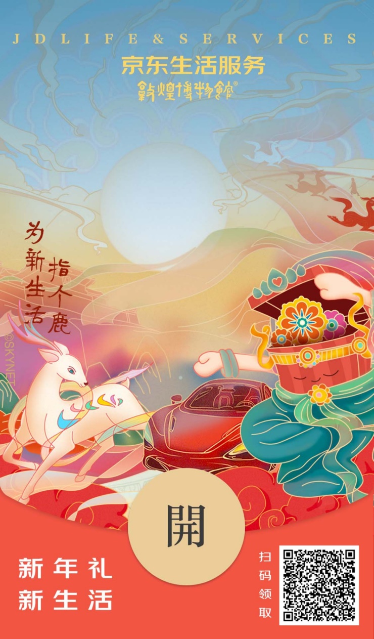 年礼安排完毕,春节的红包大战咱也绝对不能输!扫描下图二维码,限量抢京东生活服务x敦煌博物馆联合推出的定制版红包封面,有了它,感觉春节发出去的每一个红包,都飘着吉祥福禄的仙气啊!