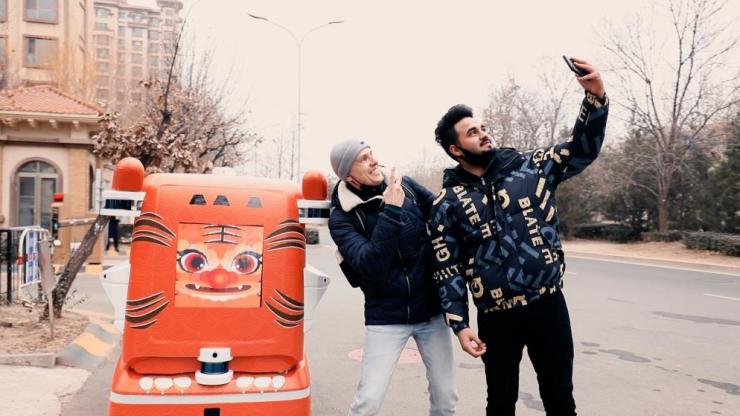 “这款无人车很智能,老虎装扮非常棒,没想到中国科技能有如此大的成就!”路过“小魔驼”的外国友人也为其点赞,他们来自俄罗斯和巴基斯坦,感叹无人配送车的方便和有趣,并在拍照留念时直言道,中国的科技越来越发达,其他国家真的需要努力了。