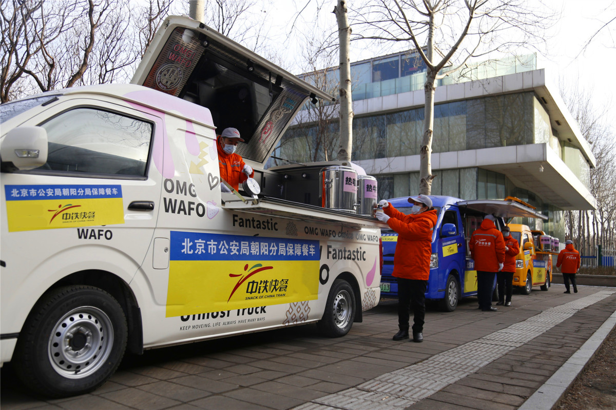 中铁快餐联合吉利汽车协助北京公安局朝阳分局安保工作的保障餐服务,冬奥会办赛期间,全程安保服务为首要任务。同时,由中铁快餐落实安保工作人员的保障餐,定将全力以赴完成冬奥会期间的服务工作。