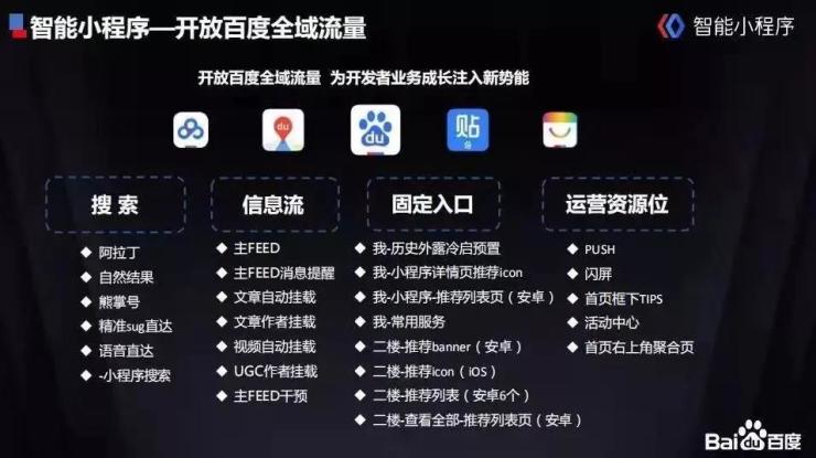 百度小程序融合百度App生态,在所有平台中唯一把小程序与推荐相融合,小程序不再唯一依靠用户自发传播,平台能将之“分发”给用户。