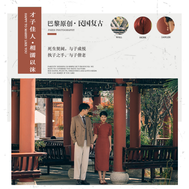 据悉,为了满足新生代结婚消费需求,8月19日-8月21日,婚礼纪以“民国风”为主题的“幸福力主题周”全新上线。平台携手金夫人婚纱摄影(华东总店)、雅云摄影旗舰店、巴黎婚纱(华南总店)等业内优质商家,共同打造了一场八月复古民国风活动,给消费者带来兼具东方美学与西方艺术的结婚消费新潮流同时,也为下半年的结婚新品消费市场给出最精准的潮流预言。