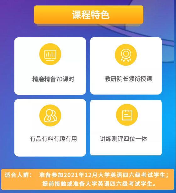 决定一个人上限的往往不是能力,而是方法。文都教育深谙学习方法的重要性,在全新上线的“大学英语四六级上岸速成班”中,老师们不仅将原本复杂琐碎的四六级知识点精心打磨,更会通过搭建知识体系、提炼关键词等方法,帮助考生明确备考策略、提高备考效率,让你在70课时的学习中掌握远超盲目自学几个月的内容。