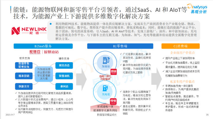 报告认为,历经5年多深耕,能链开创了物联网+SaaS服务+能源新零售的联动、创新发展格局,成为能源物联网和新零售的引领者,实现了为能源行业提供数字化赋能,促进了多重变革:提升能源行业科技化服务水平、构建精细化零售和营销体系、促进出行数字化水平和成本节约。