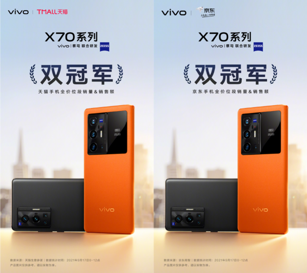 在刚刚开售不到一天的时间内, vivo X70 系列在天猫手机、京东手机均获得全价位段销量和销售额双冠军的战绩。vivo X70 Pro+这一款机型更收获了一致好评,当仁不让地宣示着自己的用户满意度。