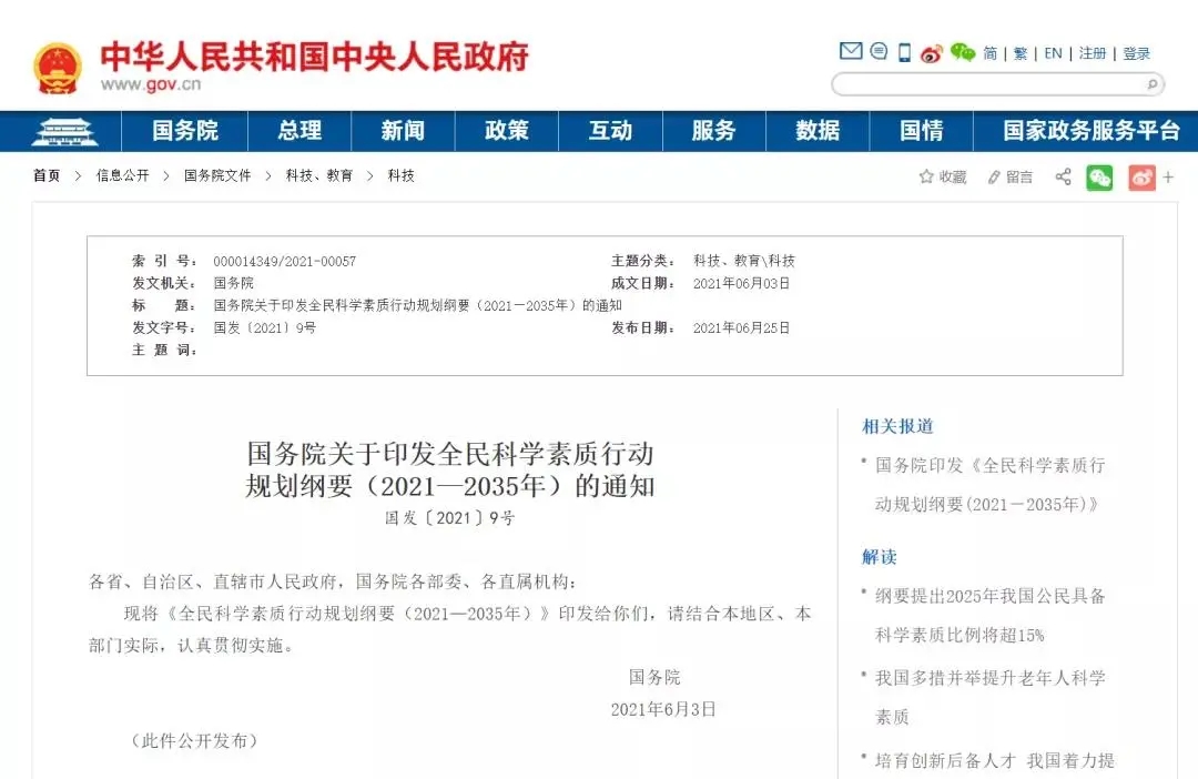 除了修炼内功,另一方面,童程童美所处的科技素质教育赛道,也是受政策鼓励和支持的方向。在国 务院发布的《关于印发全民科学素质行动规划纲要(2021—2035年)的通知》中,明确提出到2025年我国公民具备科学素质的比例超过15%,2035年要达到25%,并将“青少年科学素质提升行动”列为首位。
