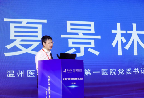 温州医科大学附属第一医院党委书记夏景林在发言中从学科建设、信息化建设、绩效考核、患者满意度等方面分享了温州医科大学附属第一医院高质量发展的实践经验。他总结说:“服务质量的提高是无止境的,信息化名片要更加亮,医教协同共同抓。让百姓放心,让员工满意,医教研共同发展,把学科特色做鲜明,这是我们持之以恒追求的目标。”