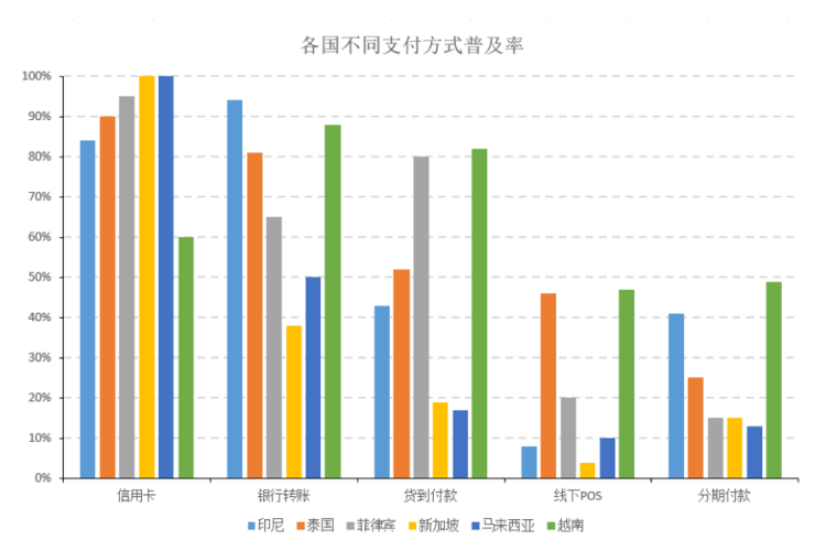 首信易支付通过对于整个东南亚地区的支付方式分析,向卖家展示了东南亚市场用户的支付方向的习惯,同时建议卖家结合东南亚地区不同国家的消费者支付喜好,搭建满足市场需求的支付方式,如: