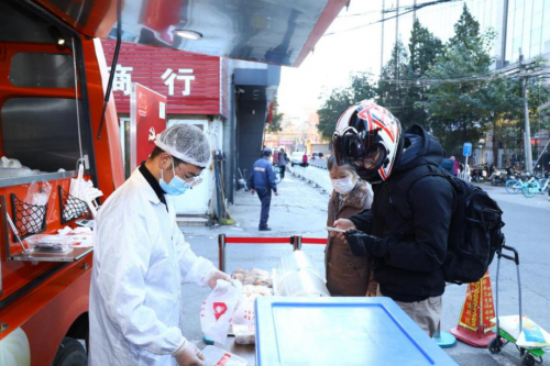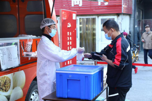 10月23日,海淀区花园路街道党工委联动庆丰包子铺开展了“党为群众办实事,全电餐车入社区”便民服务活动。参加活动的党员现场为街道周边环卫工人、外卖小哥、快递小哥等社会公共服务人员配送暖心餐,让他们在紧张的工作间隙,能够方便快捷地解决就餐问题。同时,活动现场还为社区老年人配备营养餐食等,受到社区居民的一致好评。