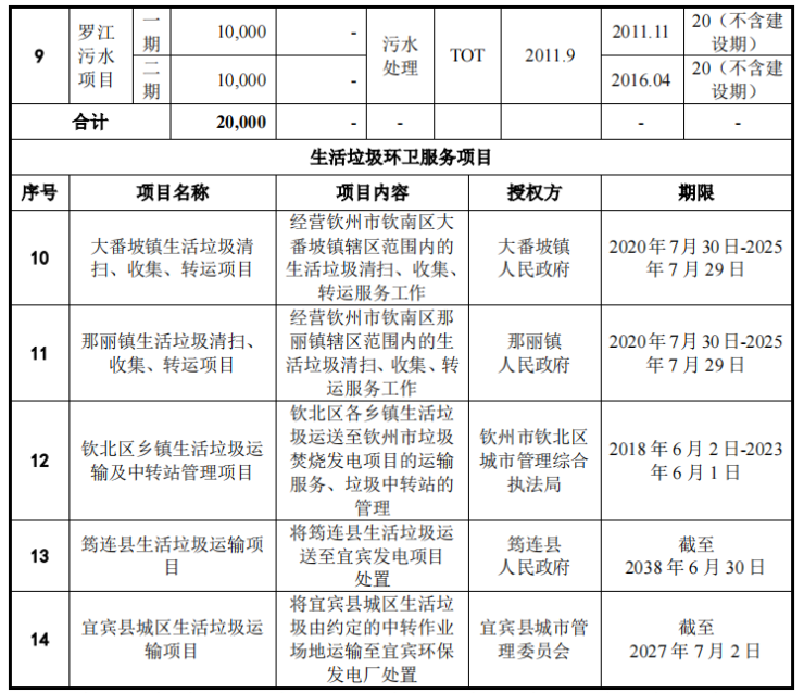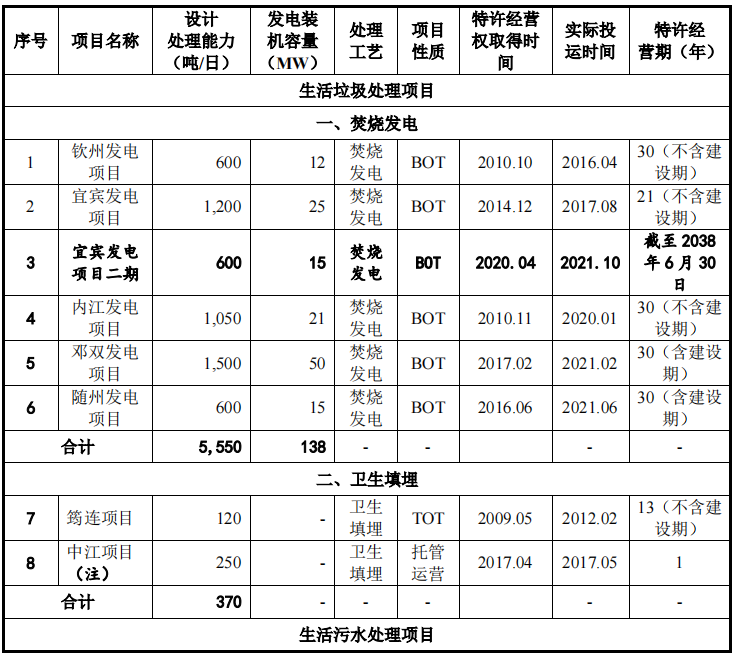 截至目前,海诺尔已运营的生活垃圾焚烧发电、卫生填埋、环卫服务项目分别为 6 个、2 个、5 个,生活垃圾设计日处理能力合计为 5,920 吨/ 日,发电装机容量 138MW;此外,公司还运营1个生活污水处理项目,设计日处理污水能力为20,000吨/日。截至招股说明书签署日,公司在建、筹建、储备的生活垃圾焚烧发电项目分别为2个、2 个、4 个,合计生活垃圾设计日处理能力为4,300 吨/日。