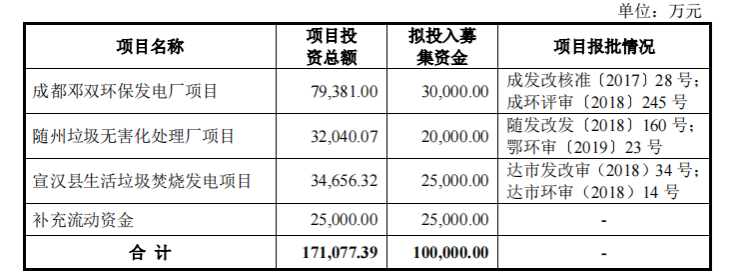资料显示,海诺尔本次募集资金10亿元,投资项目主要围绕提升了公司生活垃圾处理服务能力、做大做强生活垃圾处理主业、增强公司可持续发展能力和持续盈利能力展开。本次募集资金投资项目邓双发电项目处理规模为1,500 吨/日、随州发电项目处理规模为600 吨/日、宣汉发电项目处理规模为700 吨/日以及补充流动资金。