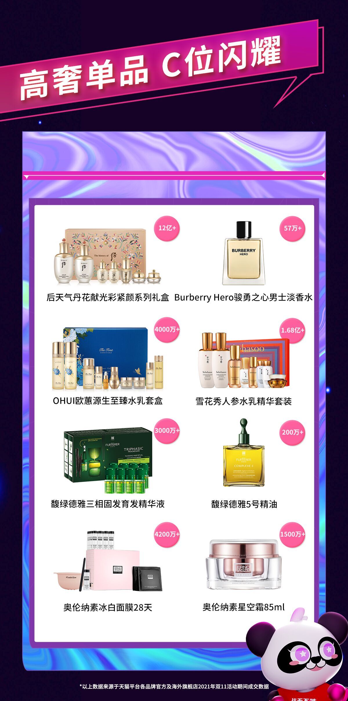 另外,从高奢单品来看,表现同样可圈可点,比如后天气丹花献光彩紧颜系列礼盒成交超12亿,雪花秀人参水乳精华套装超1.68亿。
