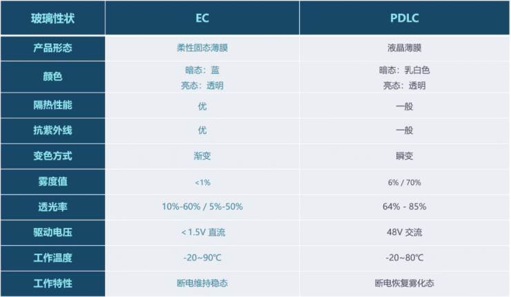 从光羿科技在智能领域电致变色玻璃的一些关键参数来看:
