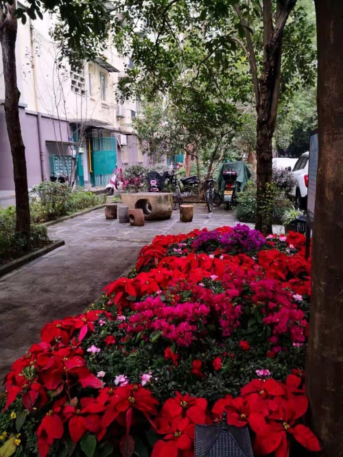 11月中旬的一天,笔者走进和睦新村,成片的一品红争妍斗艳,连叶的秋海棠阿娜多姿;小区入口的似锦繁花在季秋时节展现出一派鲜明靓丽的姹紫嫣红,赏心悦目的花卉为居民生活增添了别样色彩。“环境整治前这里是朝天裸土,乱石砖块;现在一律变身鲜花大道伴你回家。”居民何先生如是说。