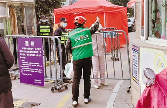 从12月7日晚上开始,受疫情影响,杭州东新园小区开始实施全面封闭管控。因事发突然,正在小区里送外卖、送快递的小哥们被滞留了。但在大家的齐心协力下,无论是小区内的核酸检测、日常消杀,还是小区外的民生保障配送,都在有条不紊地进行着。门里门外,忙而不乱,是大家最明显的感受。