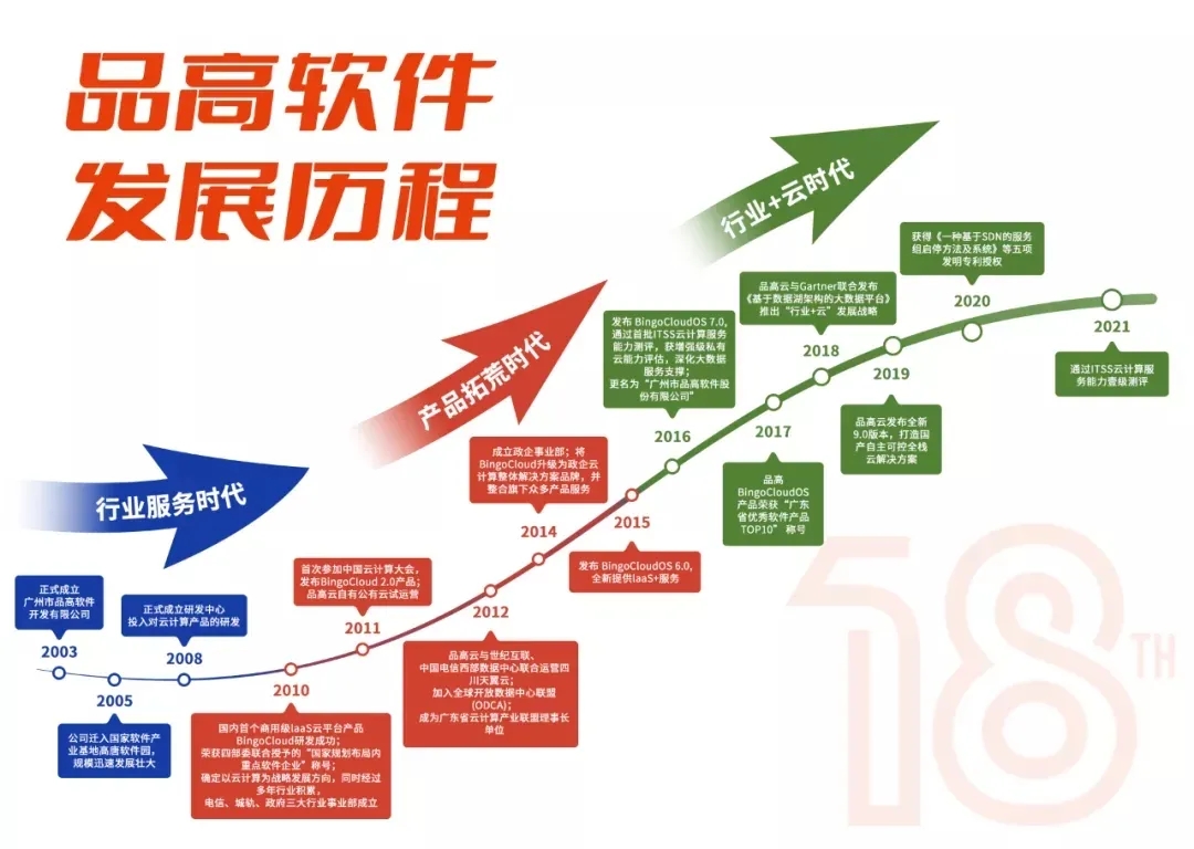 品高软件作为国内专业的云计算及行业信息化服务提供商,早在 2010 年 2 月,BingoCloudOS V1.0 品高云基础操作平台便获得了著作权,并应用到企业的信息化建设中,是国内最早拥有自主知识产权的云产品之一。多年来,通过不断自主创新和研发,品高软件以云计算为核心的品高云产品体系已拥有:基础云操作平台(BingoCloudOS)、云应用支撑平台(BingoFuse)、数据湖管理平台(BingoInsight)、聆客企业协作平台(BingoLink)、云管理平台(BingoCMP)五大产品,形成了完整的品高云全栈解决方案,为大中型企事业单位提供从 IaaS 基础设施层、PaaS 平台层、DaaS 数据层到 SaaS 软件层的全栈企业级云平台和信息化服务。