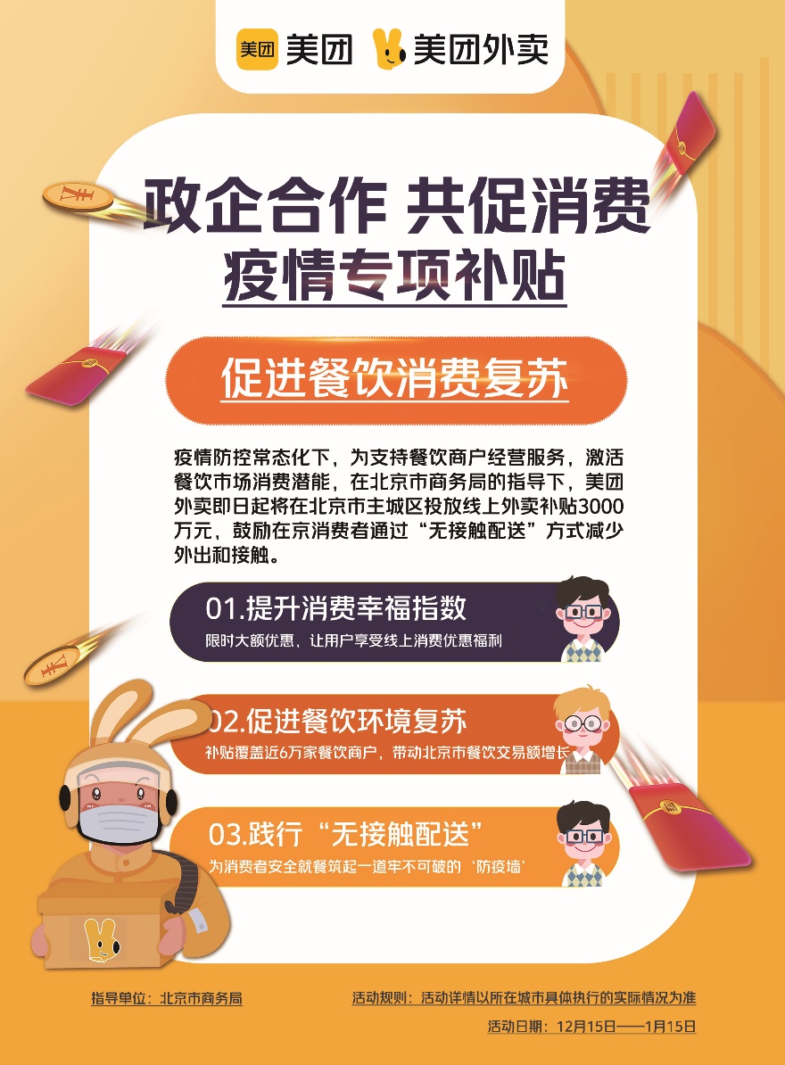 让市民享受线上消费优惠 美团外卖在北京发放3000万元惠民补贴