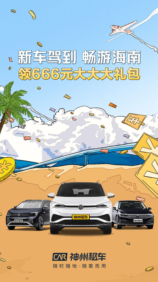 与本次新能源车同步上线的,还有神州租车的海南专属666元大礼包。用户登录神州租车APP,进入“新车驾到 畅游海南”活动专题页面,即可领取免租券、租金满减券、延时还车券等超值优惠券,以超高性价比享受到全新用车体验。