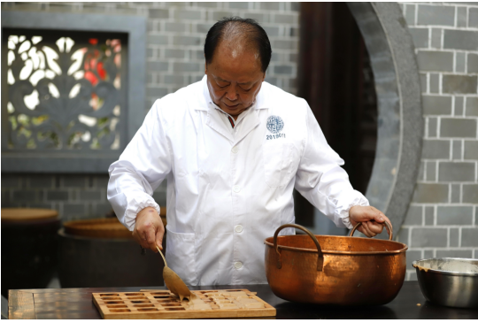 光绪年间,张文玉首创半夏炮制秘诀,并以此秘制恒制半夏饼,专治久咳久喘。先筛拣籽粒均匀的半夏,倒入缸内,用清水浸泡,每七天加入一种辅料,依次为皂角、明矾、皮硝、甘草、青盐、石灰、生姜,需要七七四十九天。