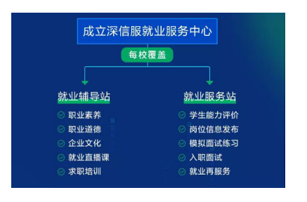 面向试点合作院校免费共建就业服务中心,指导、推荐高级和优秀初中级持证求职学生进入深信服上下游企业及数万家生态合作伙伴。