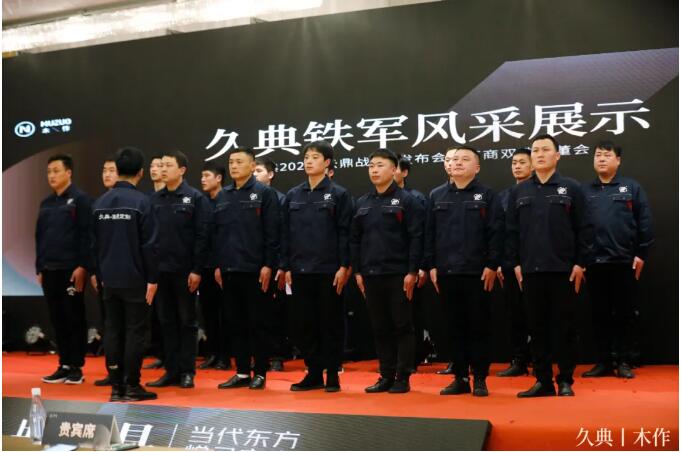 久典家具始终坚持“以人为本”的经营理念,一直不忘初心,坚守匠人匠心精神,打造了一支优秀的精英团队,为经销商持续赋能,提供一站式专业服务,2022年久典家具营销铁军必将带领团队强服务、打胜仗、拿结果!仅仅5分钟的团队风采展示将发布仪式推向高潮,引来全场阵阵掌声,为久典精英团队喝彩!