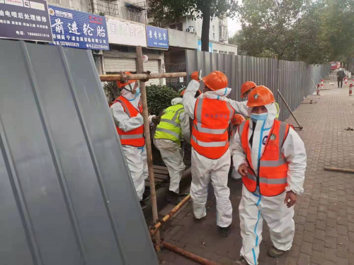 1日下午,接到搭建防疫围挡通知后,区住建局迅速召集安质站工作人员,实地踏勘封控区、管控区,连夜制定围挡搭建方案。同时,积极协调浙江信宇建设集团、浙江大荣建设集团、武汉建工集团、浙江耀厦集团等10多家建筑企业,组织施工人员约1000人次,调集约80辆车运输建筑物资和施工人员。工人们不辞辛苦、日夜奋战,历经4天3夜,搭起了坚实防线。