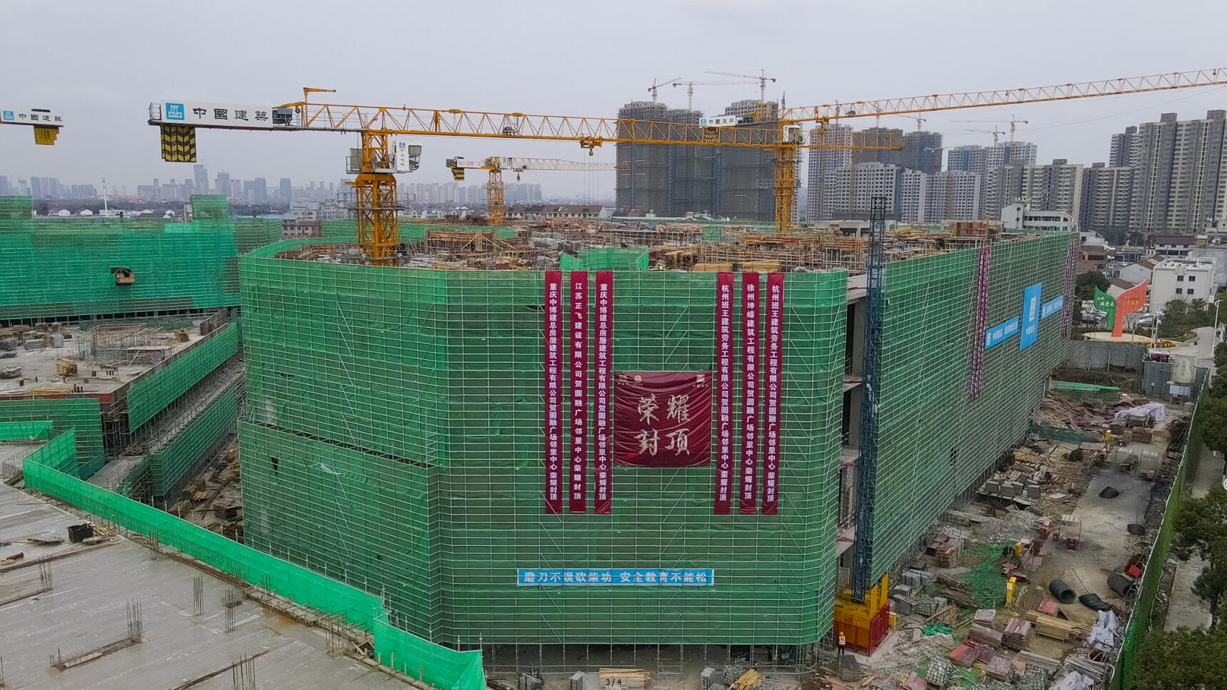 开新局保履约。2021年1月,项目管理团队跑步进场,春节全员坚守现场,发扬争先精神,克服了无锡文明城市创建、国家“双限”、疫情防控常态化等不利因素,全力推进工程建设,相继完成了售楼处开业、预售、商业区封顶等节点,为工程高效履约奠定了坚实基础。