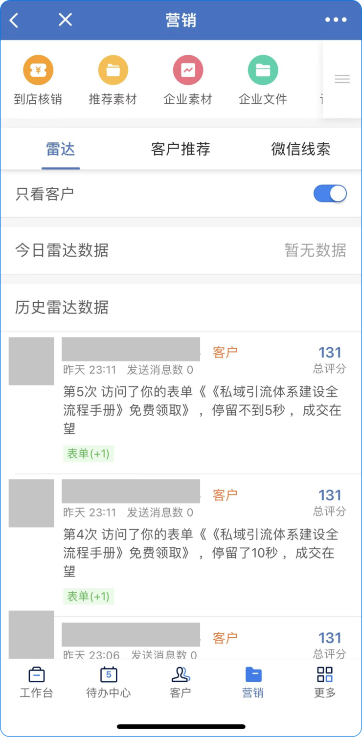 (尘锋SCRM能够及时进行雷达提醒)