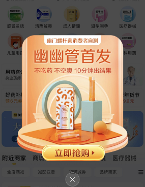 美团买药全国首发幽门螺杆菌自测产品 无需空腹10分钟出结果