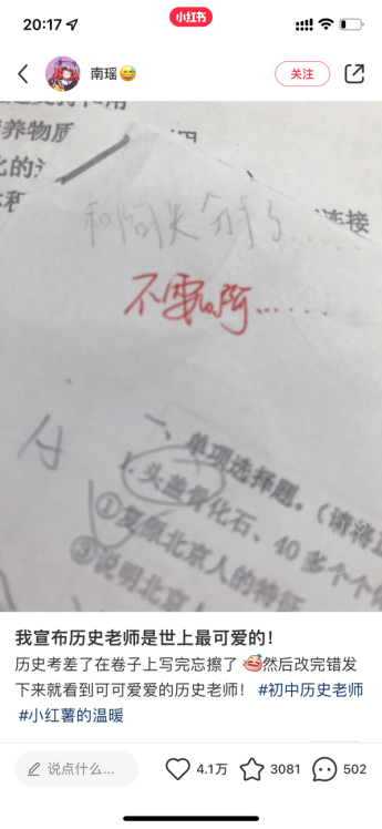 此外,现实生活中许多温馨的小事也会通过传播小红书而被放大和知晓,并感染他人,如师生之间的有趣互动、抑郁症患者和医生的温馨时光、残疾狗及其主人的温馨故事……它就像一个生活的大广场,到处都充满了温暖。