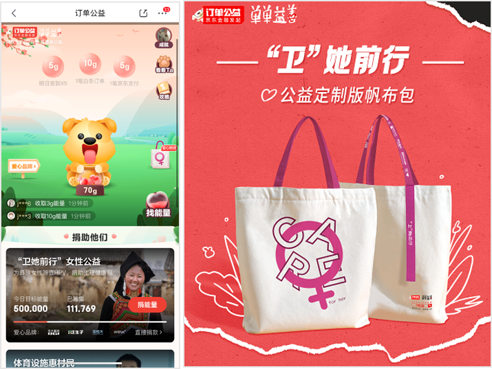 为进一步改善女性健康状况,妇女节来临之际,京东“订单公益”联合京东公益物爱相连、京东健康、京东安联保险,与中国妇女发展基金会共同发起“卫她前行”公益活动。消费者打开京东App或京东金融App搜索“订单公益”就能参与,可将在京东购物时使用京东支付、白条支付、数字人民币支付完成的订单,免费兑换为公益物资女性“健康包”。