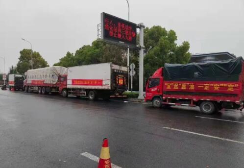 3月31日清晨16辆满载安庆对上海同胞关怀的物资车辆缓缓离开宜城驶往千里之外的上海市嘉定区安亭镇