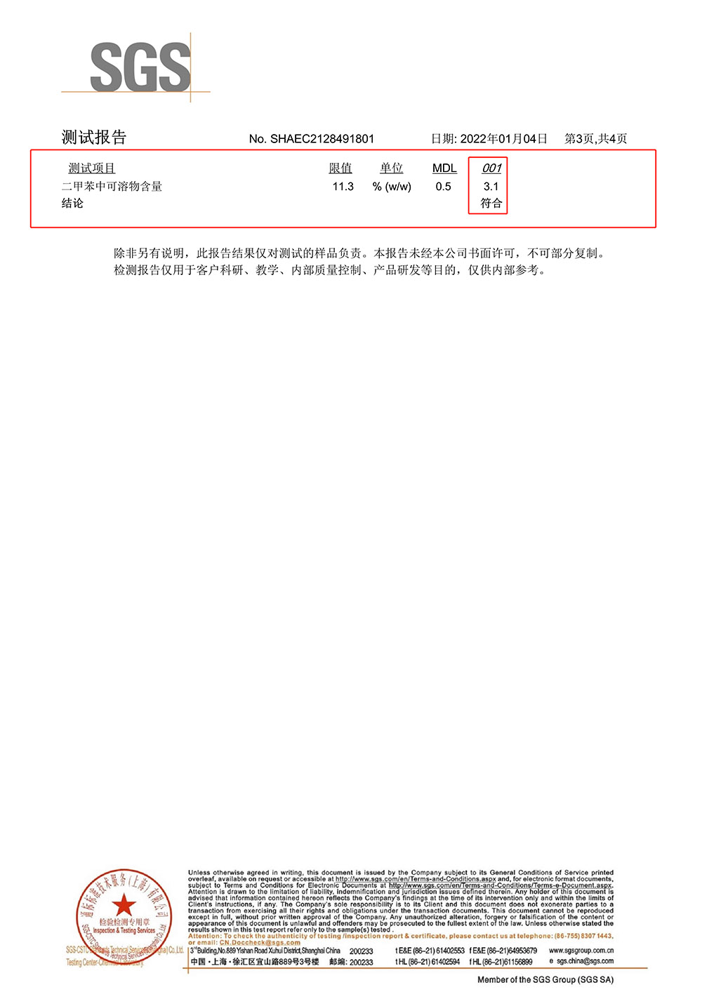 #指通过第三方检测机构在实验条件下进行的一次完整皮肤刺激实验,检测结果为无刺激性,符合相关要求