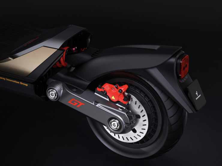 在车辆性能上,GT系列标配了双叉臂前悬挂和拖曳臂后悬挂,将顶级跑车和顶级摩托车的减震技术运用于滑板车,配合前后15级阻尼可调油压减震器,带来极致的车辆操控性和行驶舒适性,让这一“性能怪兽”更好驾驭。