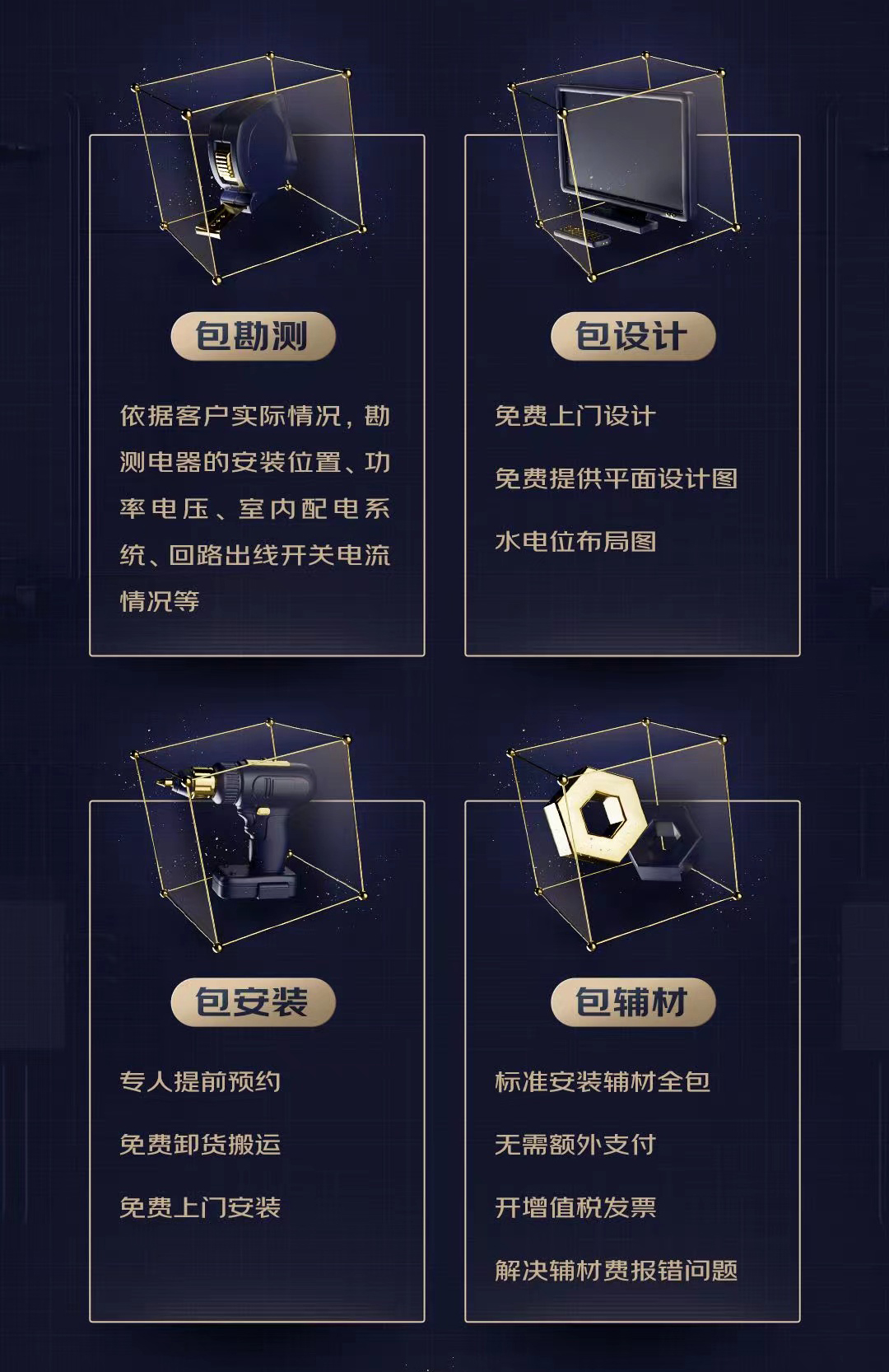 而京东在企业客户需求理解方面有着多年的沉淀和积累,也一直以“拓展上游资源、延长办公服务链条、丰富场景集成解决方案”为抓手,不断完善对于企业商用场景的服务能力。此次携手品牌推出的“企业工程一价无忧解决方案”即是京东基于市场痛点,为企业用户提供的“一次付款全包办妥”的一站式商用电器工程采购服务。它覆盖商用厨电、会议平板两大品类,让企业在采购商用电器产品时,无需二次支付费用,即可享有“包勘测”、“包安装”、“包设计”、“包辅材”的服务权益,工程交付体验省心、省时、省力、高效便捷。