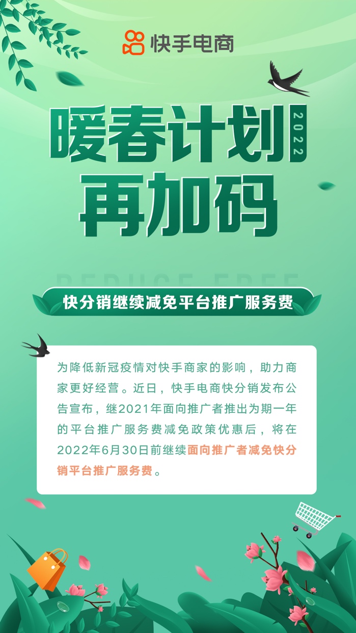 快手电商暖春计划再加码,快分销继续减免平台推广服务费