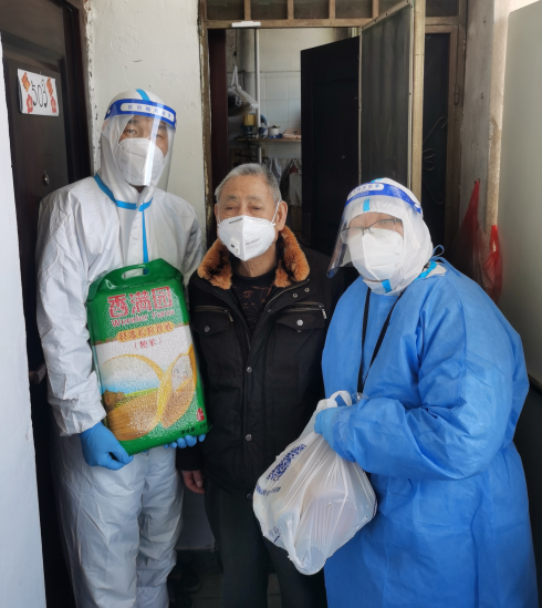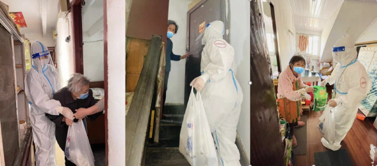 4月20日在整理好首批高龄独居老人的需求后,当日晚间,包括米、面、油、面粉、调味品等在内的民生物资公益礼包,在家乐福上海金桥店配置打包完成,4月21日陆续送抵分布在上海浦东、虹口、闵行等各区的独居老人家中。