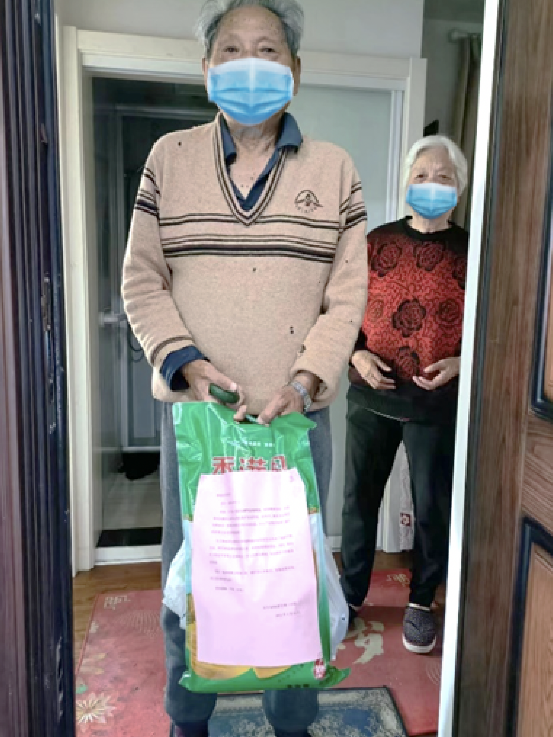 不会团购接龙的90岁高龄俞爷爷,今日收到一份急需的粮油等物资的公益补给,让因疫情一直居家的他多了一份舒心。