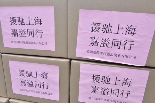 杭州嘉溢制衣有限公司作为本土企业,也是南苑商会成员单位,一直致力于社会公益,多次为南苑疫情防控工作提供人力物力支持。“一方有难,八方支援,目前上海疫情形势严峻,全国人民将同上海同舟共济、共克时艰,助力上海赢得疫情防控胜利。”公司董事长管伟民说。