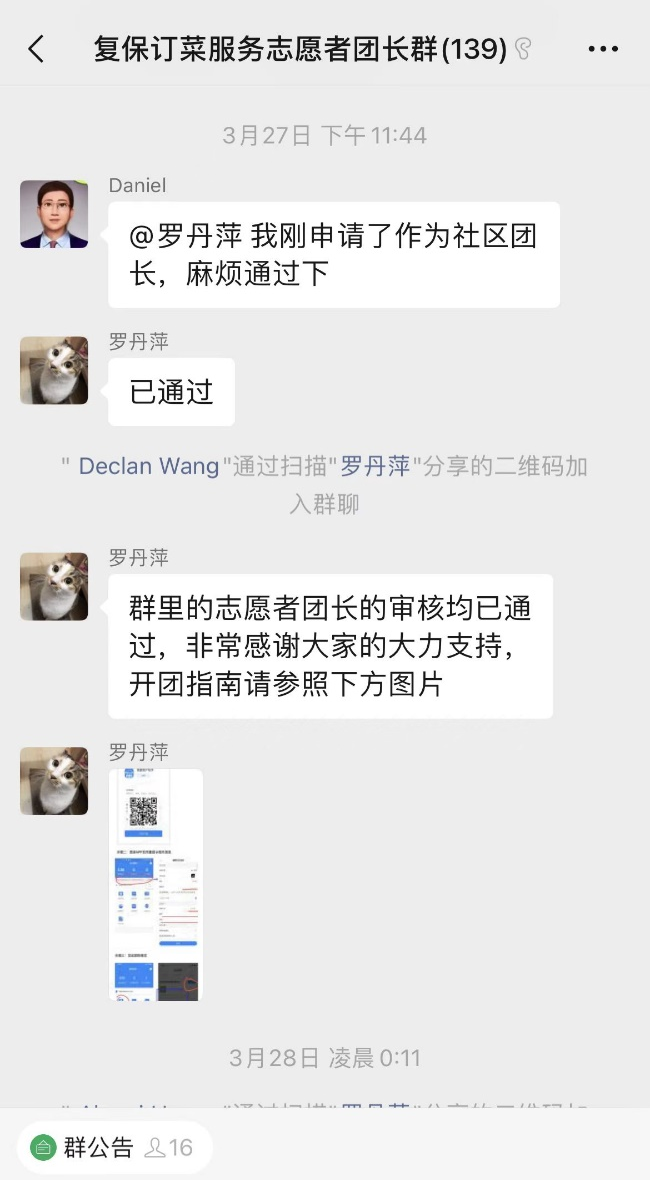 3月27日周日晚上11点多,群里突然热闹了起来,大家开始纷纷进群申请成为志愿者团长。