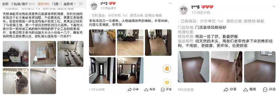 而与之相反的是,长期坚持以用户为中心的品牌,在服务上也始终以保障消费者利益为先。同样以天格为例,2019年天格推出了地板行业首创的“安装服务站”模式,由技术精湛、服务高效并经总部培训认证的安装工程师直接为用户提供安装,用高标准的专业施工和匠心服务为用户打造高品质使用体验,助力千家万户实现温暖美好的家居生活。在天格的天猫旗舰店评价中、用户的朋友圈中,大量消费者对天格的安装服务给予高度好评。有消费者就表示,“天格的安装服务我非常的满意,能时时刻刻站在我这个业主角度考虑问题,是一个说到做到的大品牌。”甚至许多选择天格的用户,被好产品和好服务打动后,自发成为天格的野生代言人,将天格介绍给身边的亲朋好友。